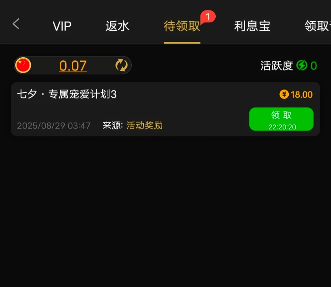 8月15-8月28日,任意存款≥10元,七夕当天尊享神秘彩金赠送,充值过的可以登录去看看,没有无视。