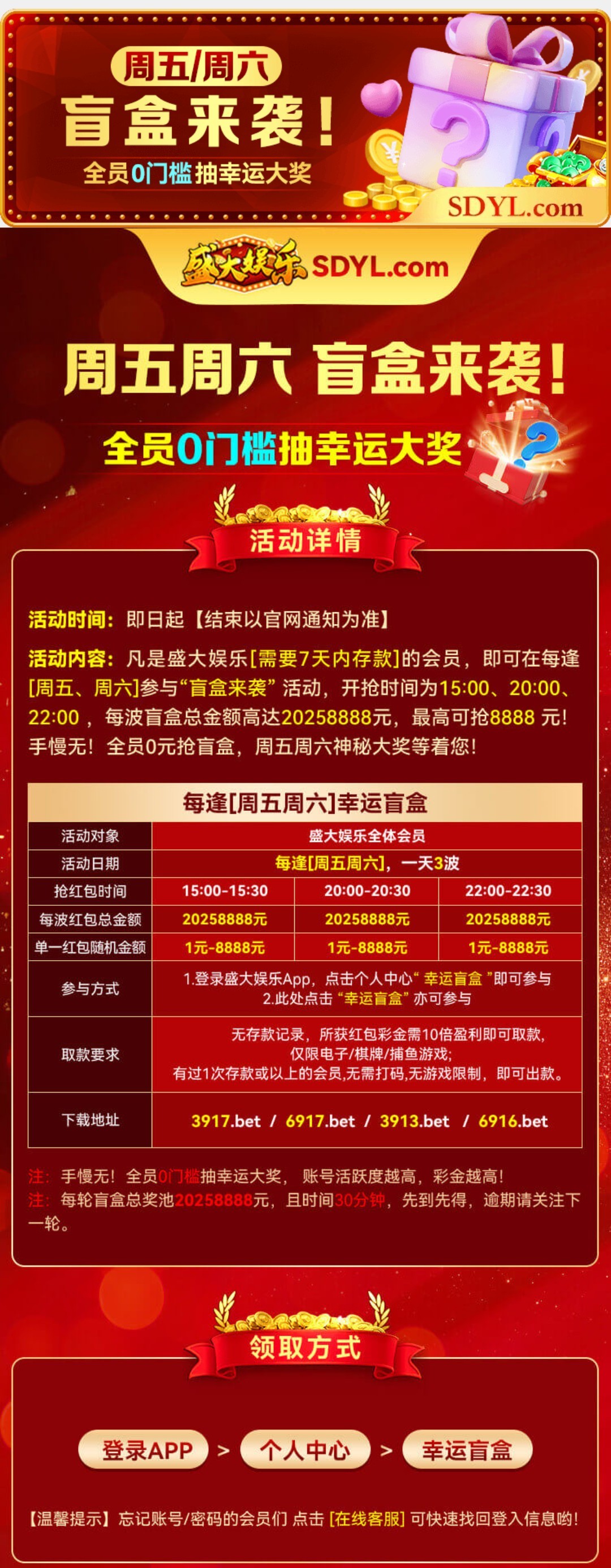 每周五周六,幸运盲盒。